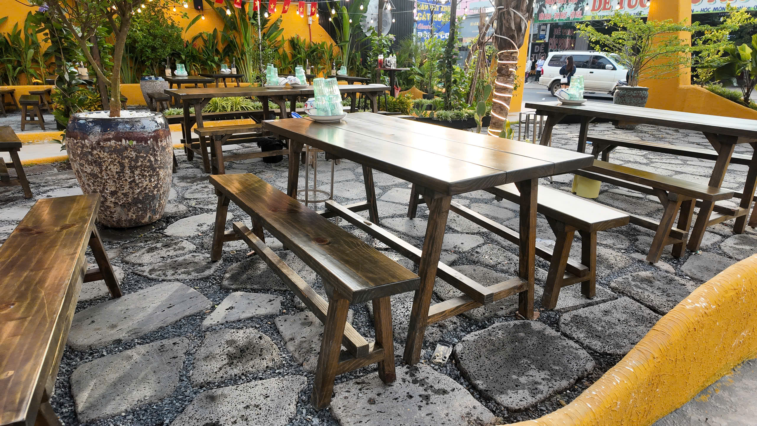 Bàn ghế gỗ thông quán ăn 1m2 x 70cm – Đẹp, bền, giá tại xưởng