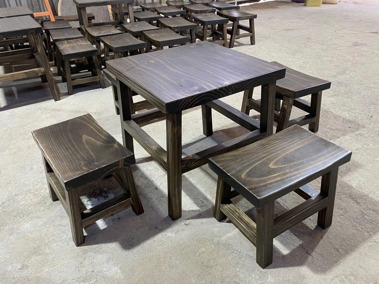 Thiết kế bàn vuông nhỏ gọn hiện đại kết hợp ghế đôn mặt lõm cho mặt ngồi vô cùng thoải mái.