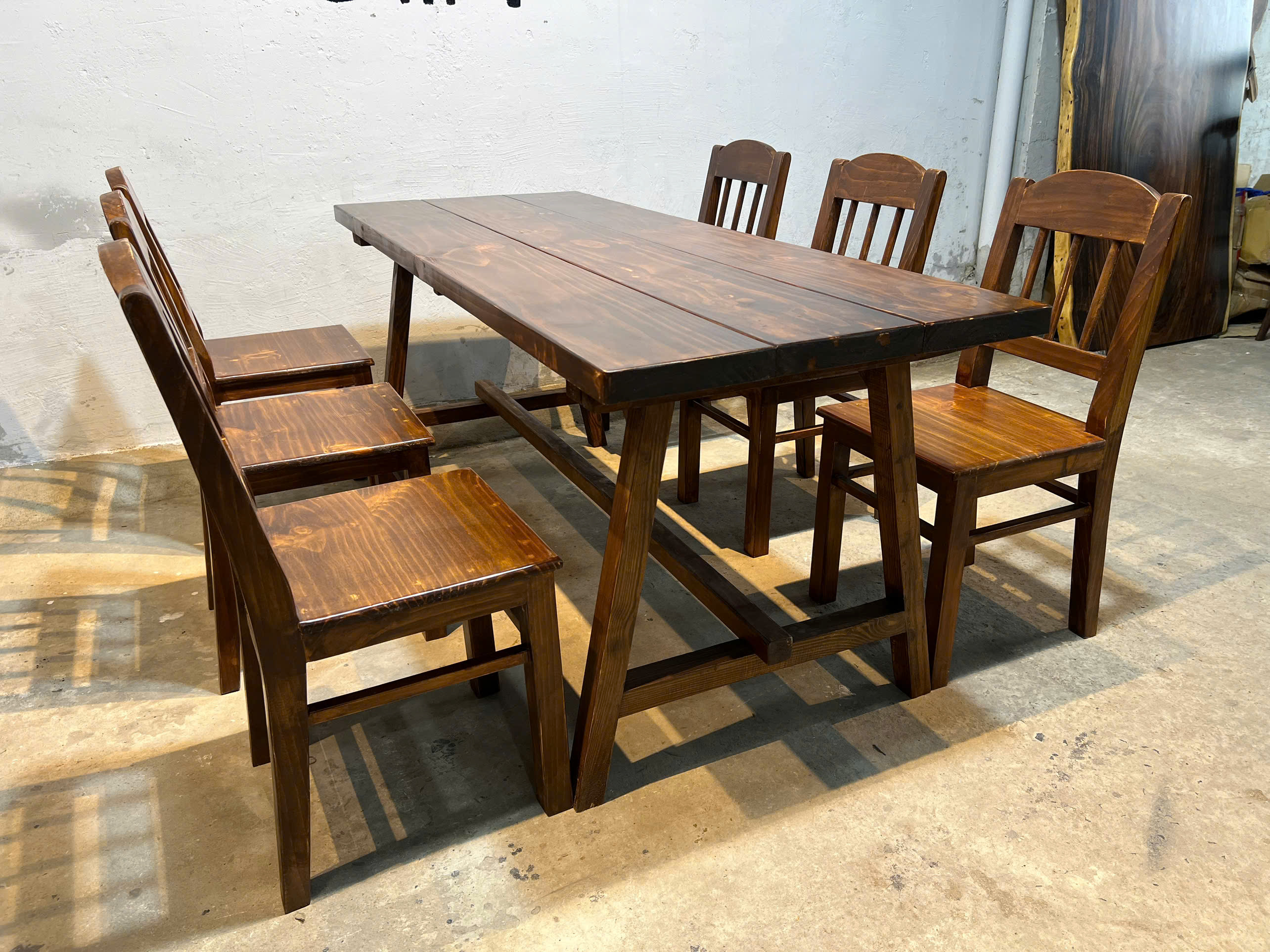 Bộ bàn gỗ thông New Zealand 1m6 x 70cm cao 75cm kèm 6 ghế tựa G8 chắc chắn, sang trọng. Sản xuất tại xưởng, giá tốt, giao hàng toàn quố
