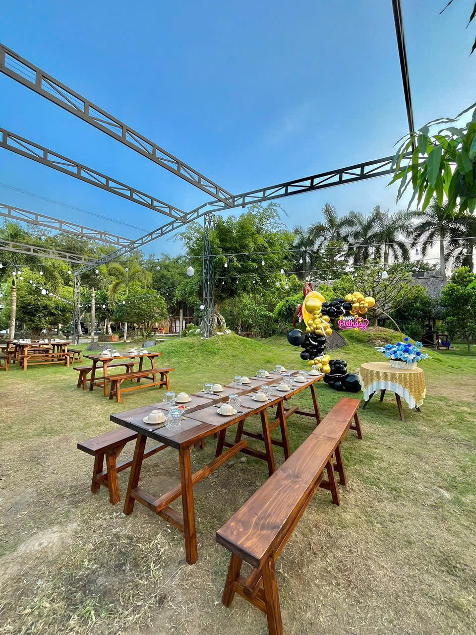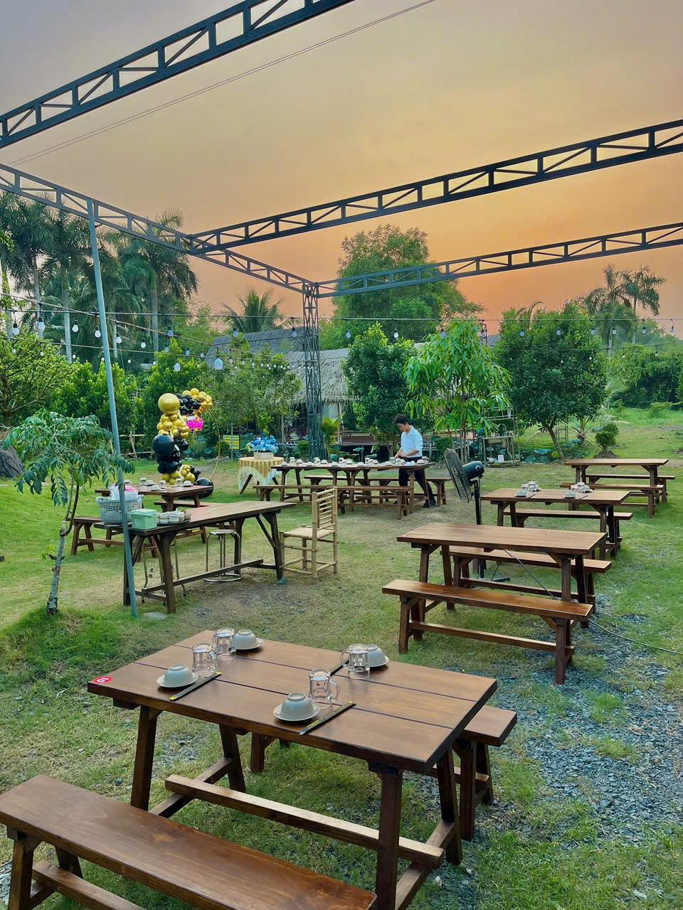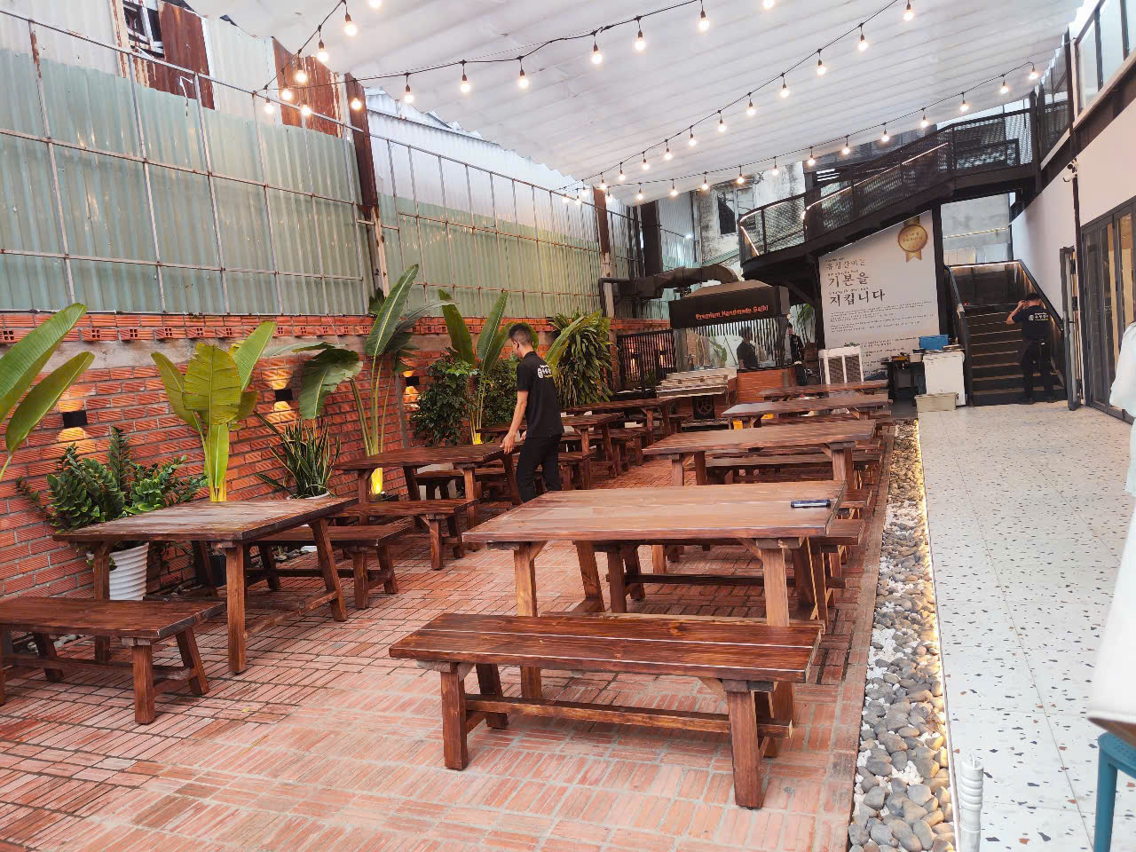 Ghế băng dài chắc chắn: Thay thế cho nhiều ghế rời, giúp quán gọn gàng và dễ sắp xếp.