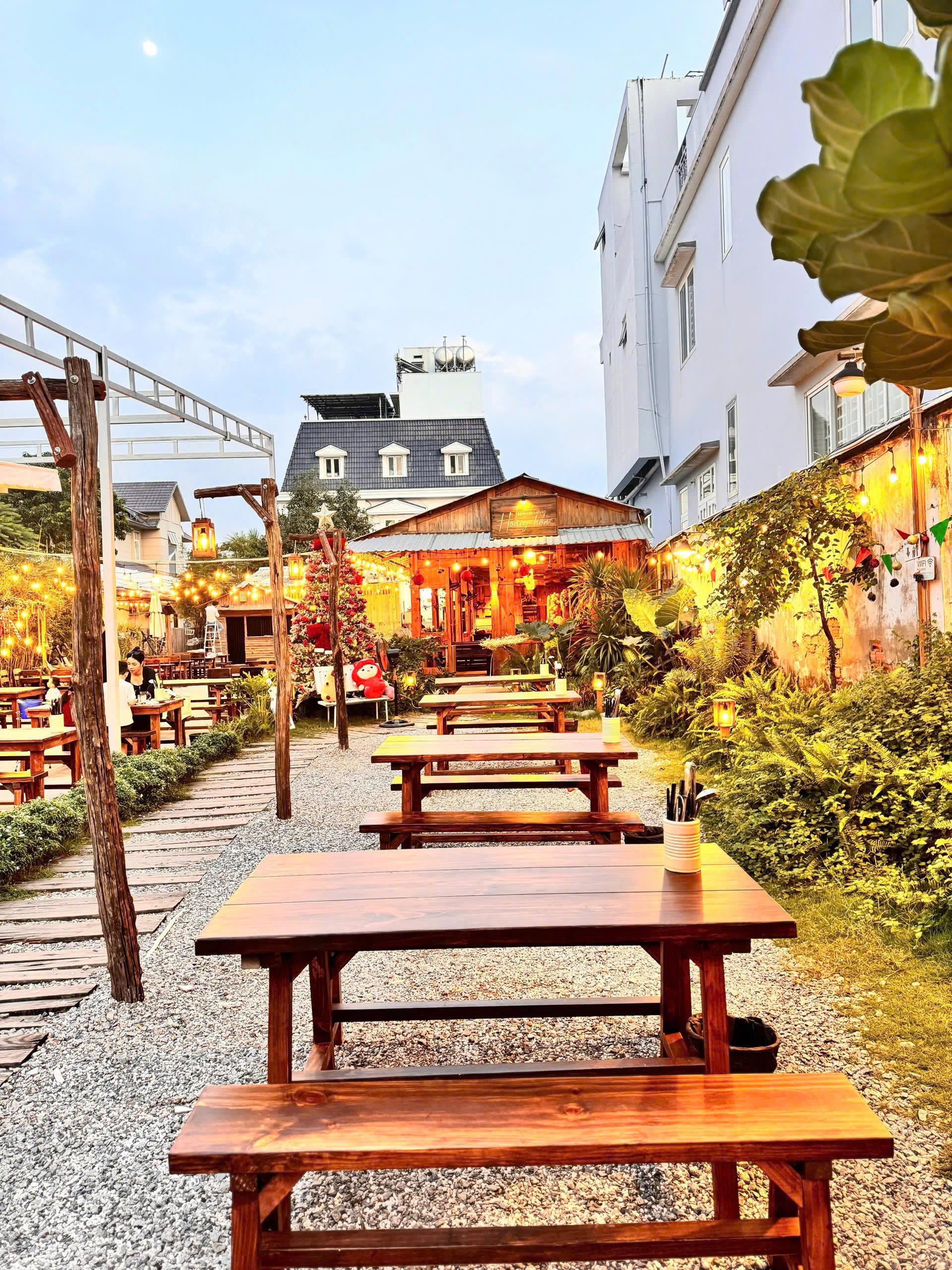 Thẩm mỹ mộc mạc: Màu gỗ sáng tự nhiên, tạo không gian gần gũi, ấm cúng cho thực khách.